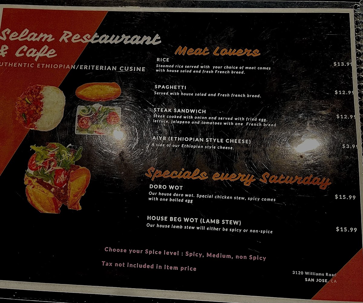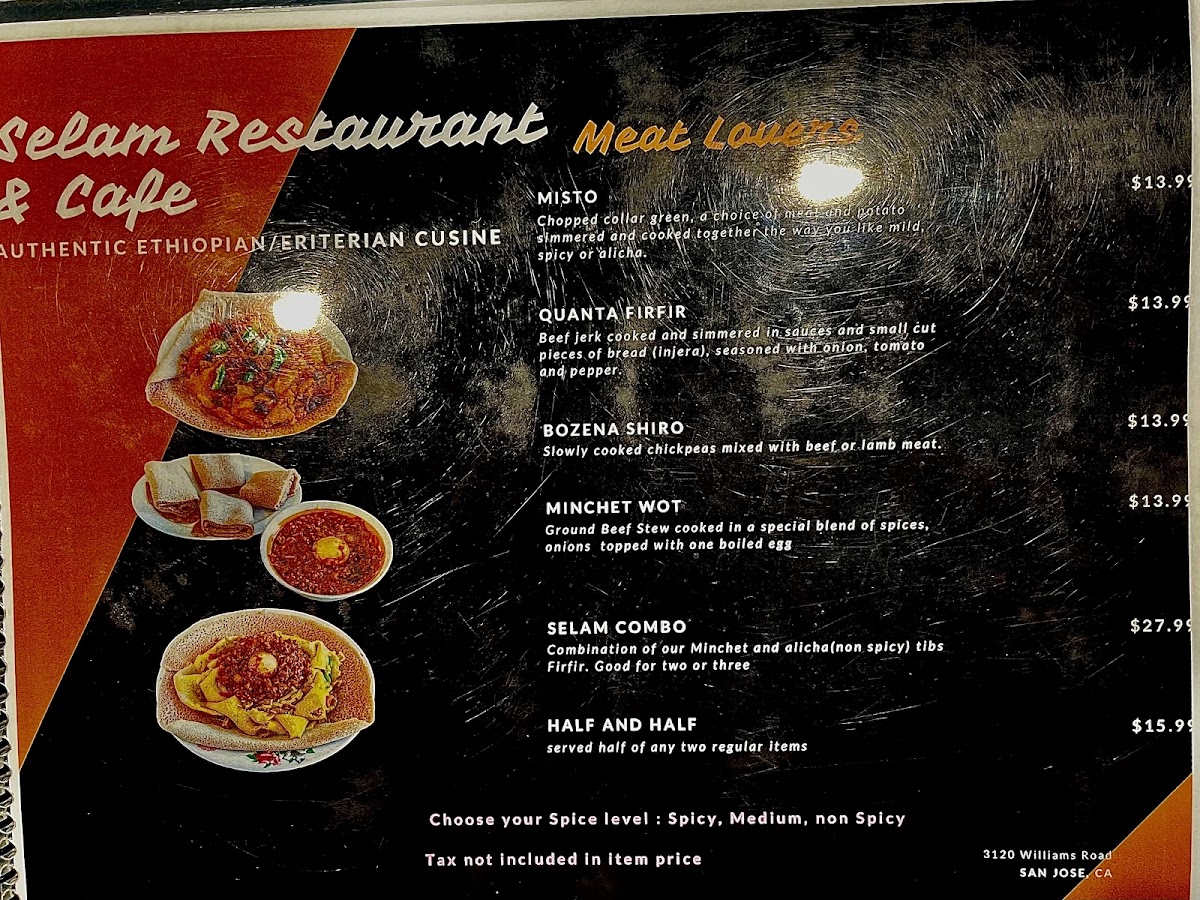 If you’re on a quest for an authentic Ethiopian experience in San Jose, look no further than Selam Restaurant and Cafe. Nestled at 3120 Williams Rd, this charming eatery captures the heart and soul of Ethiopian cuisine, offering a warm and inviting atmosphere that truly embodies the spirit of community. With a focus on homemade ingredients, Selam serves dishes that are as flavorful as they are colorful, ensuring each visit is both a culinary adventure and a heartfelt connection to the rich traditions of Ethiopia.